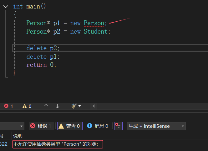 在虚函数的后面加上 = 0,那么这个函数就是纯虚函数。包含纯虚函数的类叫做抽象类,抽象类不能实例化出对象。继承后的派生类也不能实例化出对象,只有当派生类重写了这个纯虚函数才能实例化出对象。