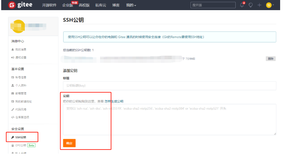 如果gitee 账号未添加公钥,会出现 下面结果