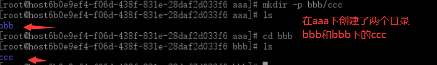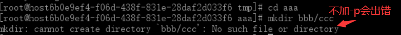 切换到aa目录下,创建 bbb/ccc 两个目录需要加 -p