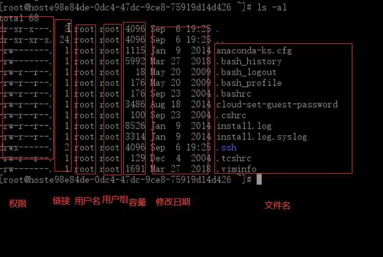 ls -a:隐藏目录和文件也被显示出来(以.开头的文件)