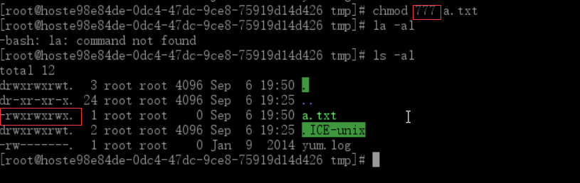 例如:将a.txt的权限改为rwxrwxrwx,权限数字就是777