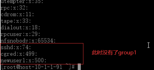 1.8 删除组group1,则组group1中的用户则被分配到其自己分配的私有组中