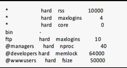 对系统所有的用户设置资源限制可以防止DoS类型攻击,如最大进程数和内存使用数量等