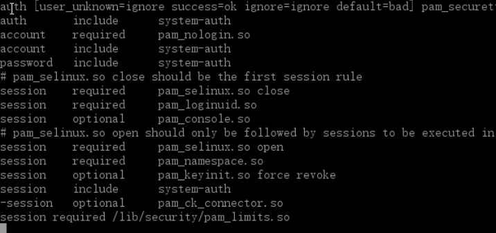 然后必须编辑/etc/pam.d/login文件检查session required pam_limits.so一行是否存在: