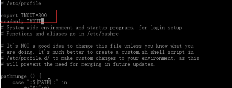 用户在线5分钟无操作则超时断开连接,在/etc/profile中添加: