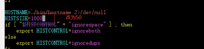 vi /etc/profile 找到 HISTSIZE=1000 改为 HISTSIZE=50。