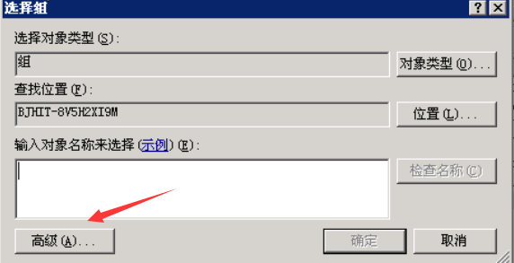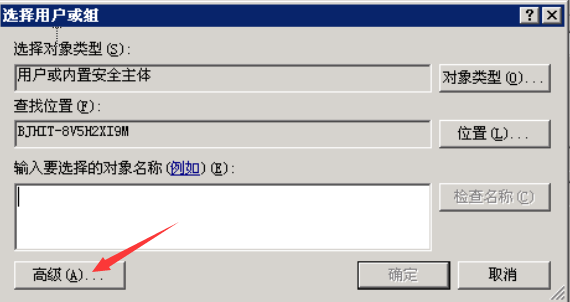 弹出选择用户或组对话框,点击高级