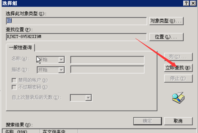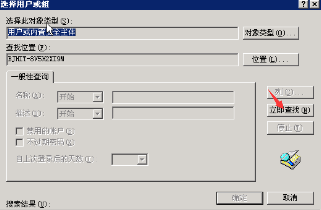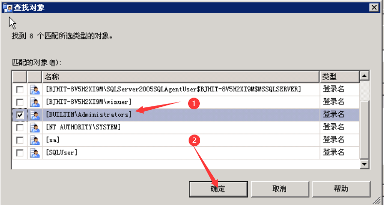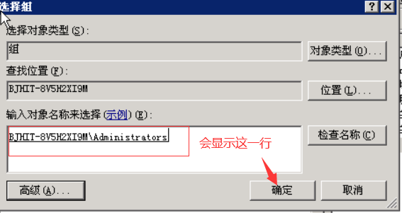 弹出查找对象对话框,在里面选择一个用户,选择administrators。