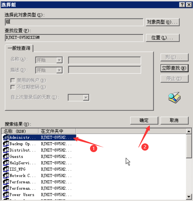 点击立即查找,在搜索结果中选择 administrators