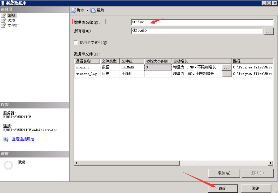 在数据库名称内输入student新建一个student数据库,然后点击确定 。