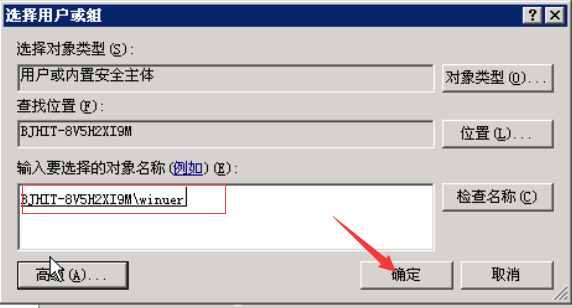 点击浏览,在里面选择一个用户,例如选择winuser