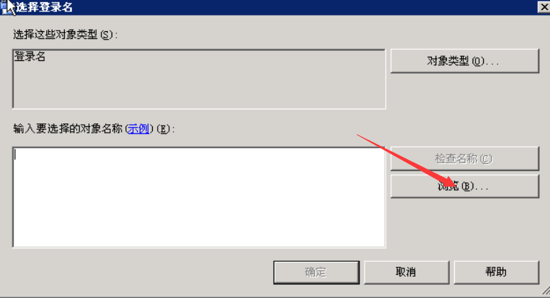 弹出选择登录名对话框,在该对话框选择浏览