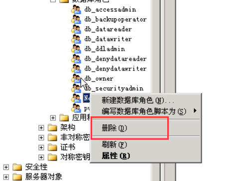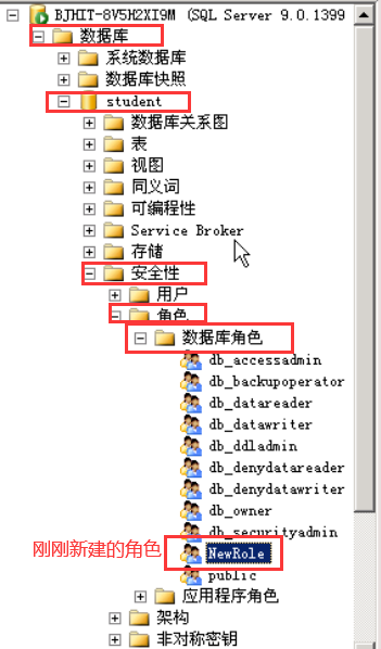 此时,就可以在安全性-角色-数据库角色中看到,刚才添加的角色已经成功。