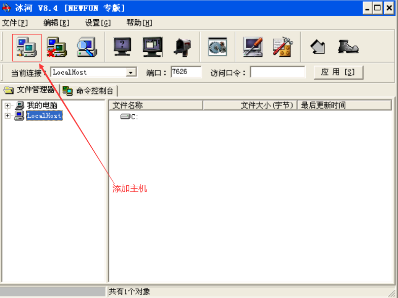 回到PC2(客户端),在冰河中单击添加的主机(PC1),出现添加主机界面,按下面输入
