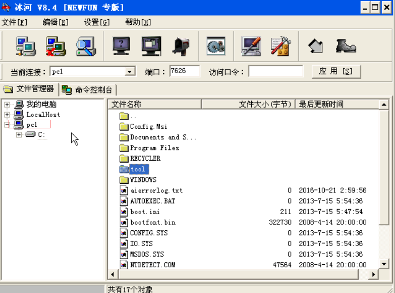 如果连接成功,则会显示服务器端主机上的盘符,服务器端主机盘符。这时我们就可以像操作自己的电脑一样操作远程目标电脑.