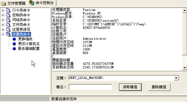 设置类命令提供了“更换墙纸”、“更改计算机名”、“服务器端配置”的功能,