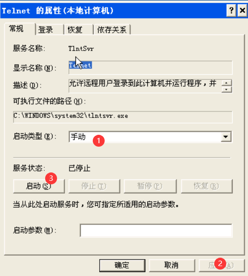 进入主机A,右键“我的电脑”->管理->服务和应用程序->服务,找到Telnet服务,将启动类型改为“手动”