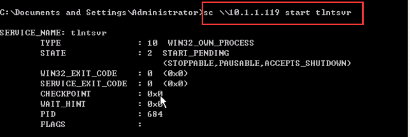 cmd中输入:sc \10.1.1.119 start tlntsvr