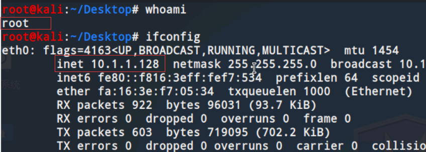1.查看win7漏洞主机的登录用户及网络配置信息