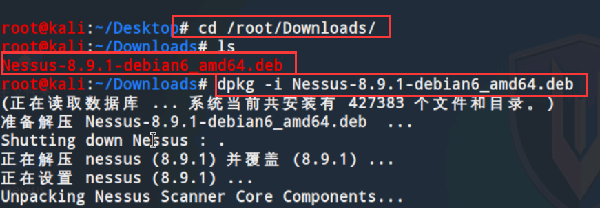 运行命令进行安装:dpkg -i Nessus-8.9.1-debian6_amd64.deb 安装Debian安装包