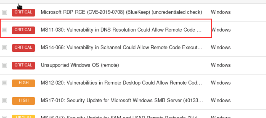 重点关注10.1.1.129主机,即win7靶机,Nessus扫描出该主机存在4个最高危漏洞、2个高危漏洞及其它漏洞问题。