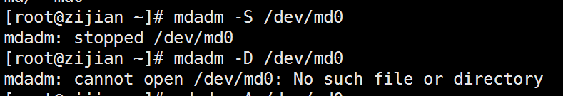 注意要更换raid0设备,必须要在取消挂载的情况下,确保故障磁盘停止工作。