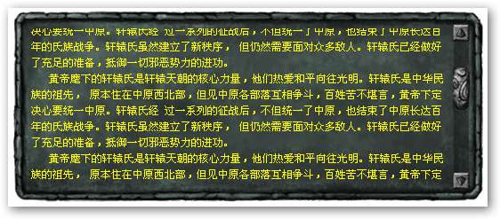 过一系列的征战后,不但统一了中原,也结束了中原长达百年的氏族战争。轩辕氏虽然建立了新秩序, 但仍然需要面对众多敌人。轩辕氏已经做好了充足的准备,抵御一切邪恶势力的进功。</p>
