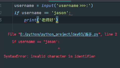 4.如果上一行代码的结尾如果是冒号 那么下一行代码必缩进