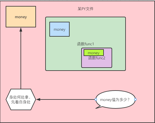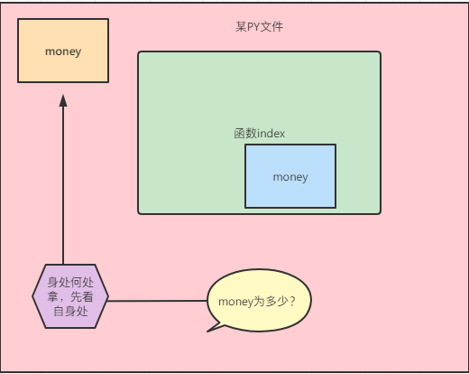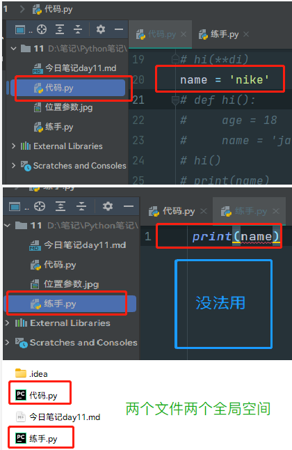 >>>打开一个py文件,在该py文件内顶格编写的代码(运行后)都存进全局名称空间,作用范围为该py文件全局