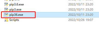 首先去打开自己安装的python解释器的目录(我电脑是装了三个版本的),找到 Scripts 文件夹,改文件夹中有pip +版本号.exe的文件,我建议是在当前目录拷贝一个副本,然后改名字为pip+版本号省略点的形式,如下图所示