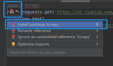 还可以这样安装,直接import 你想要安装的模块名字,此时pycharm会提醒红色小灯泡,点小灯泡选择第一行就可以安装