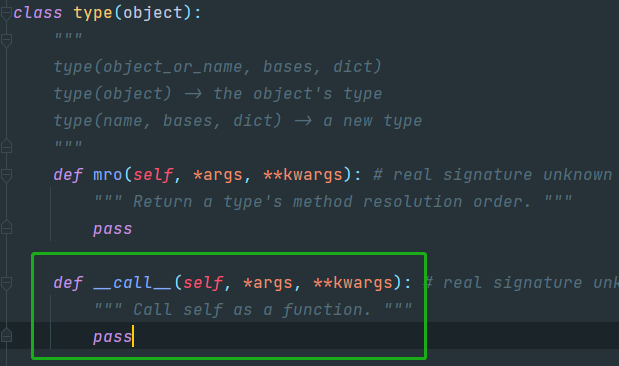 点进去type果然找到一个双下call方法,不过发现type的双下call确实存在,但是啥都没,不干涉产生类