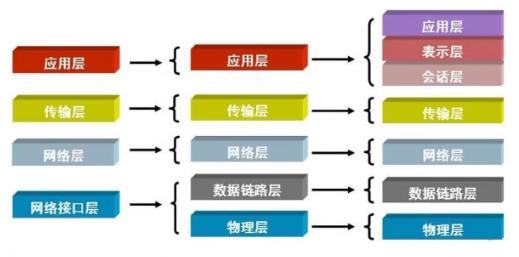 常见的是整合的五层或者四层,应用层整合会话层,表示层