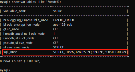 # 在数据库中可以输入show variables like '%mode%';来查看