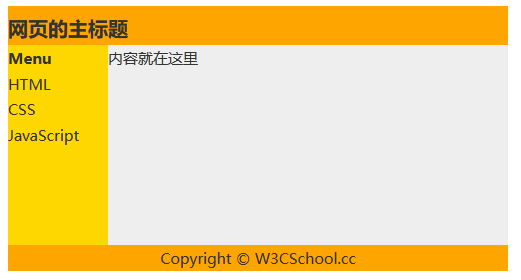 Tip: 使用 CSS 最大的好处是,如果把 CSS 代码存放到外部样式表中,那么站点会更易于维护。通过编辑单一的文件,就可以改变所有页面的布局。如需学习更多有关 CSS 的知识,请访问我们的CSS 教程.