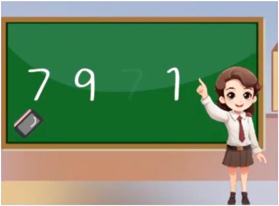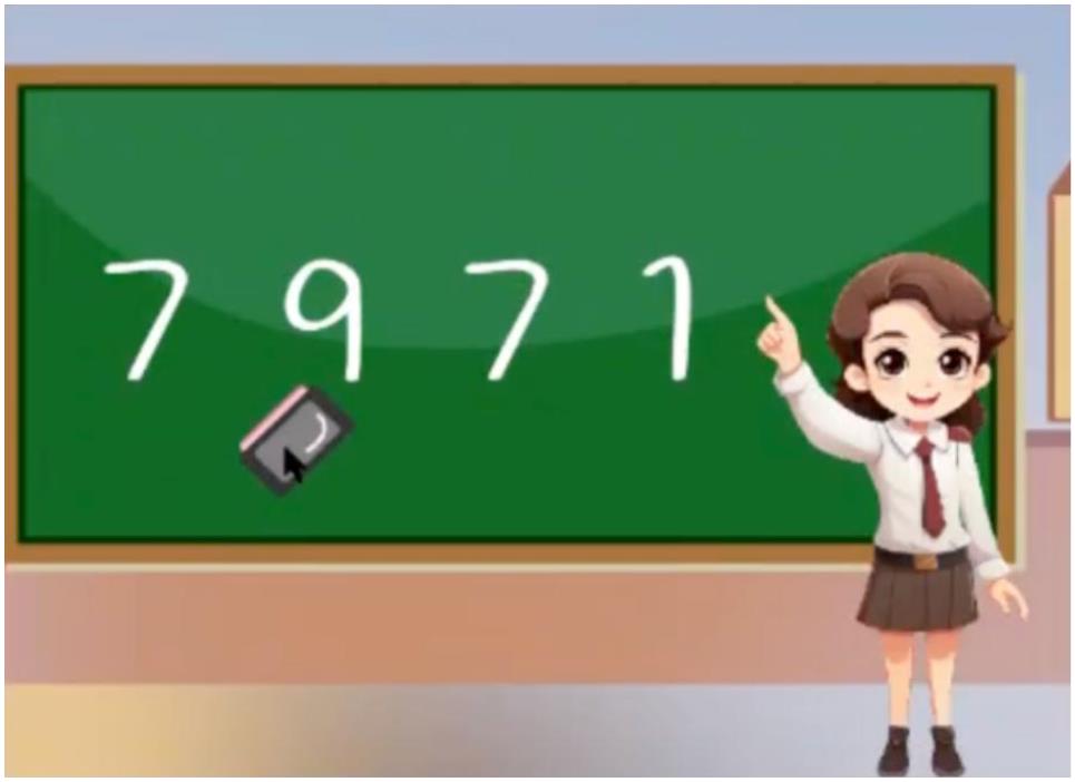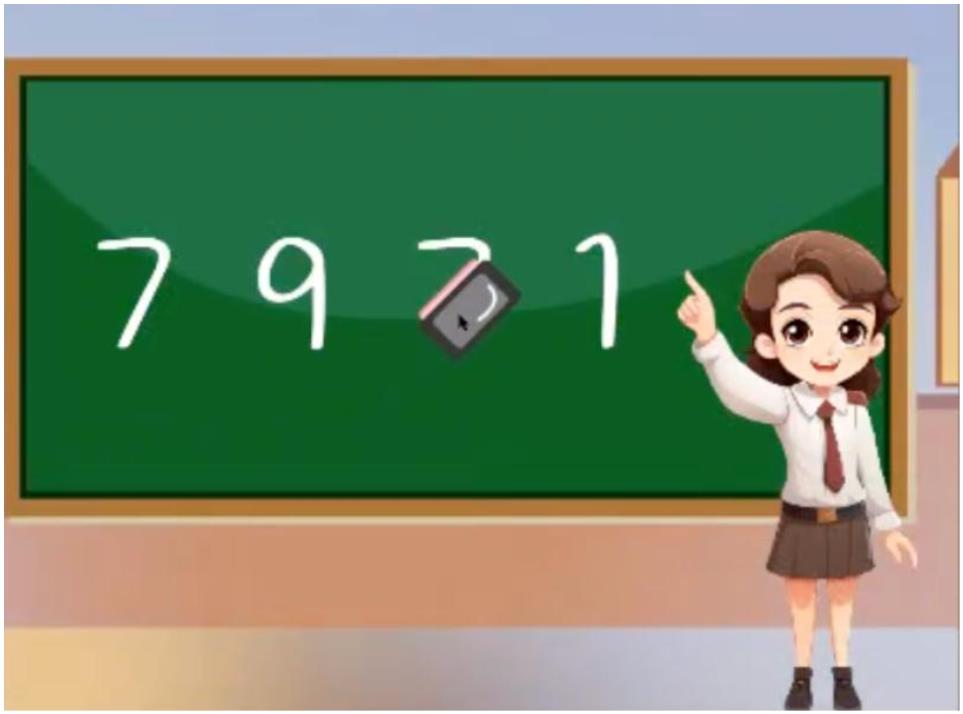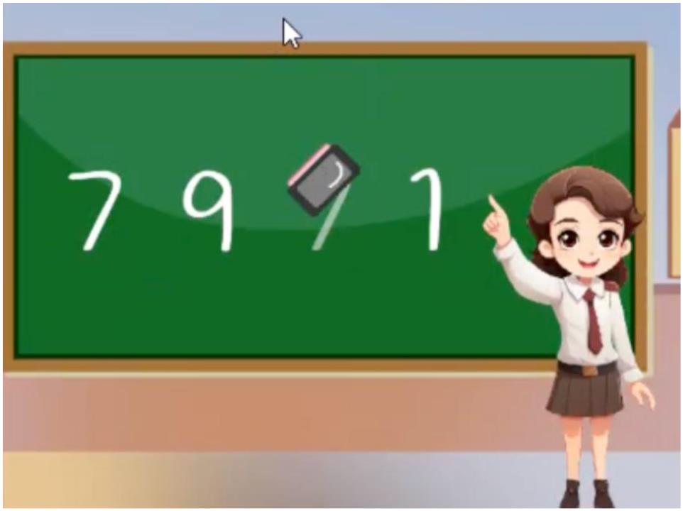 4). 把黑板擦移动到想要擦除的数字上,点击鼠标左键,黑板擦会在该数字处上下滑动擦除该数字;