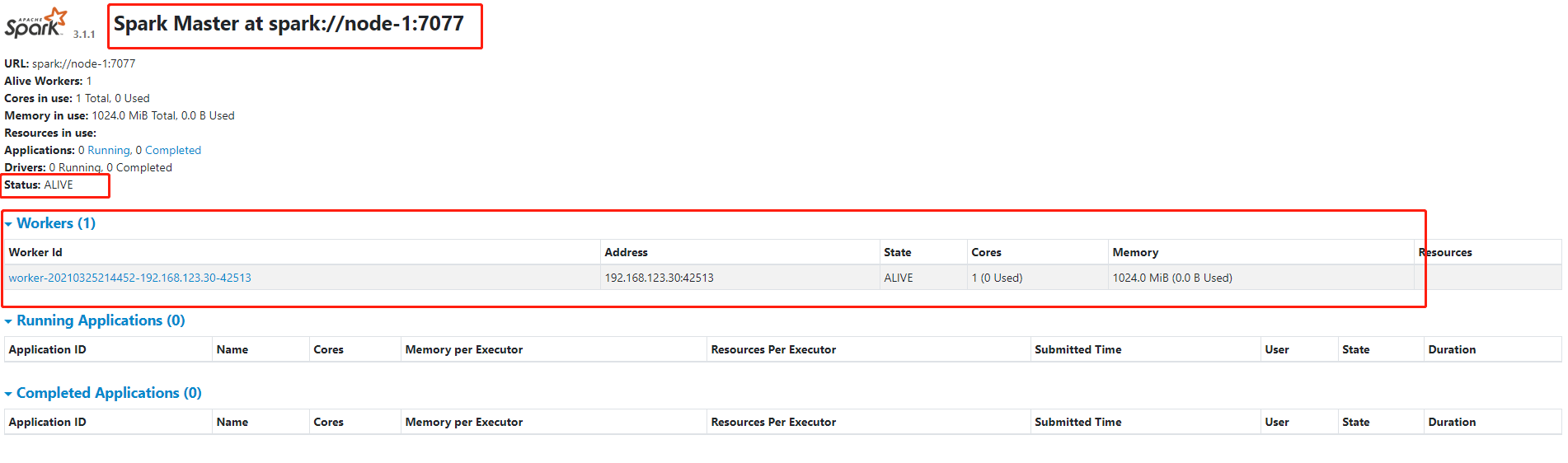 我这里只起来了一台机器,所以是一个worker,一般worker的个数是我们之前配置的worker的个数。这说明环境已经搭建好