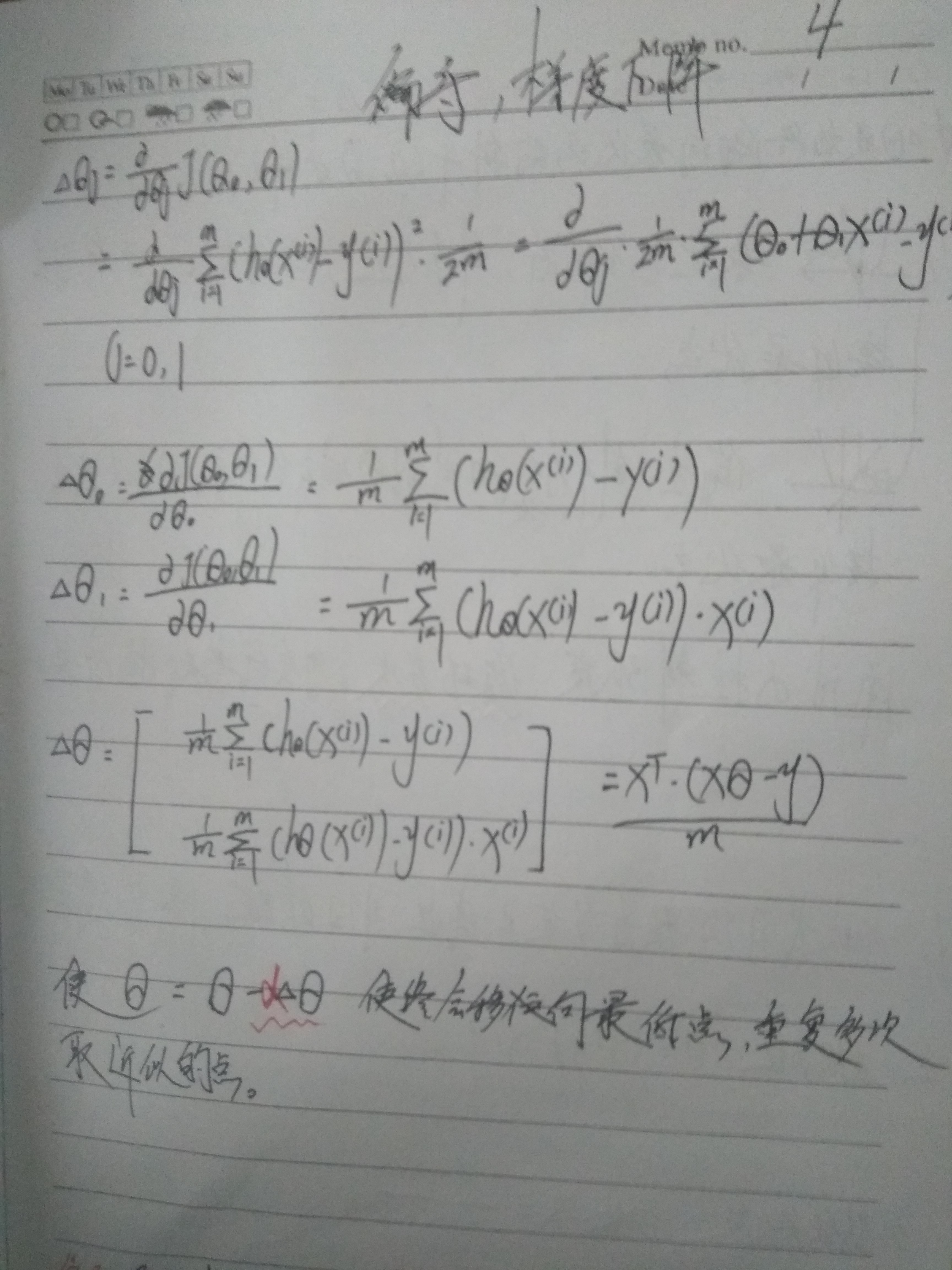 deltatheta=1.0/m*np.dot(X.T,(h-y)) #计算deltatheta