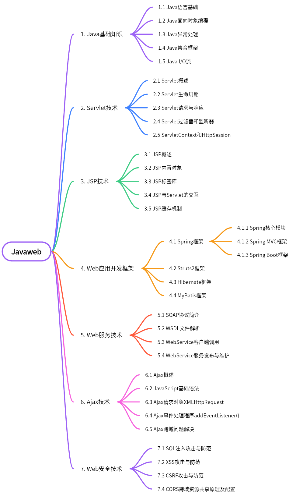 在第一次博客中提到,自己打算在这五个月中熟练掌握Javaweb技术,以下简单描述一下学习时间和计划,初步划分为以下7部分,具体步骤参考以下思维导图