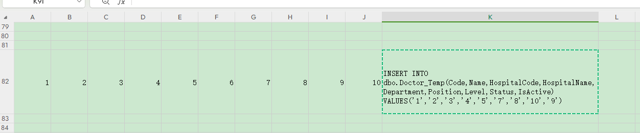 INSERT INTO dbo.Doctor_Temp(Code,Name,HospitalCode,HospitalName,Department,Position,Level,Status,IsActive)