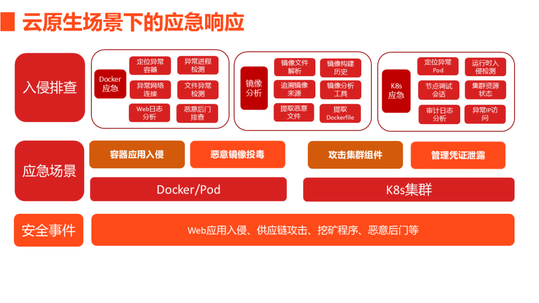 随着容器和K8s技巧的广泛应用,各种安全事件也日益增多。一旦发生安全事件,我们需要第一时间做出应急响应,以最短时间内恢复业务正常运行。