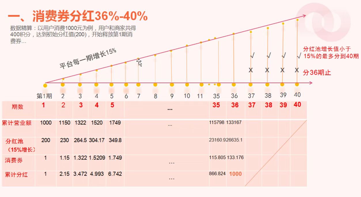 若让利池 15% 的增幅状态持续 36 次,商家和用户可实现让利部分的五倍返还;若未满足该条件,可继续享受剩余四期补贴,直至权益兑现完毕。