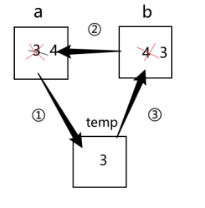 每一次比较过程中,两个数涉及到位置交换,比如 a = 3, b = 4,交换ab的数据变为 a = 4,b = 3,应该如何实现: