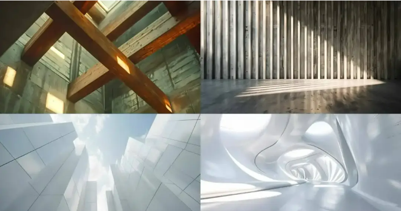 建筑:调整整体氛围 (色调/对比度)、加强空间感、合成配景 (人物/植物)。