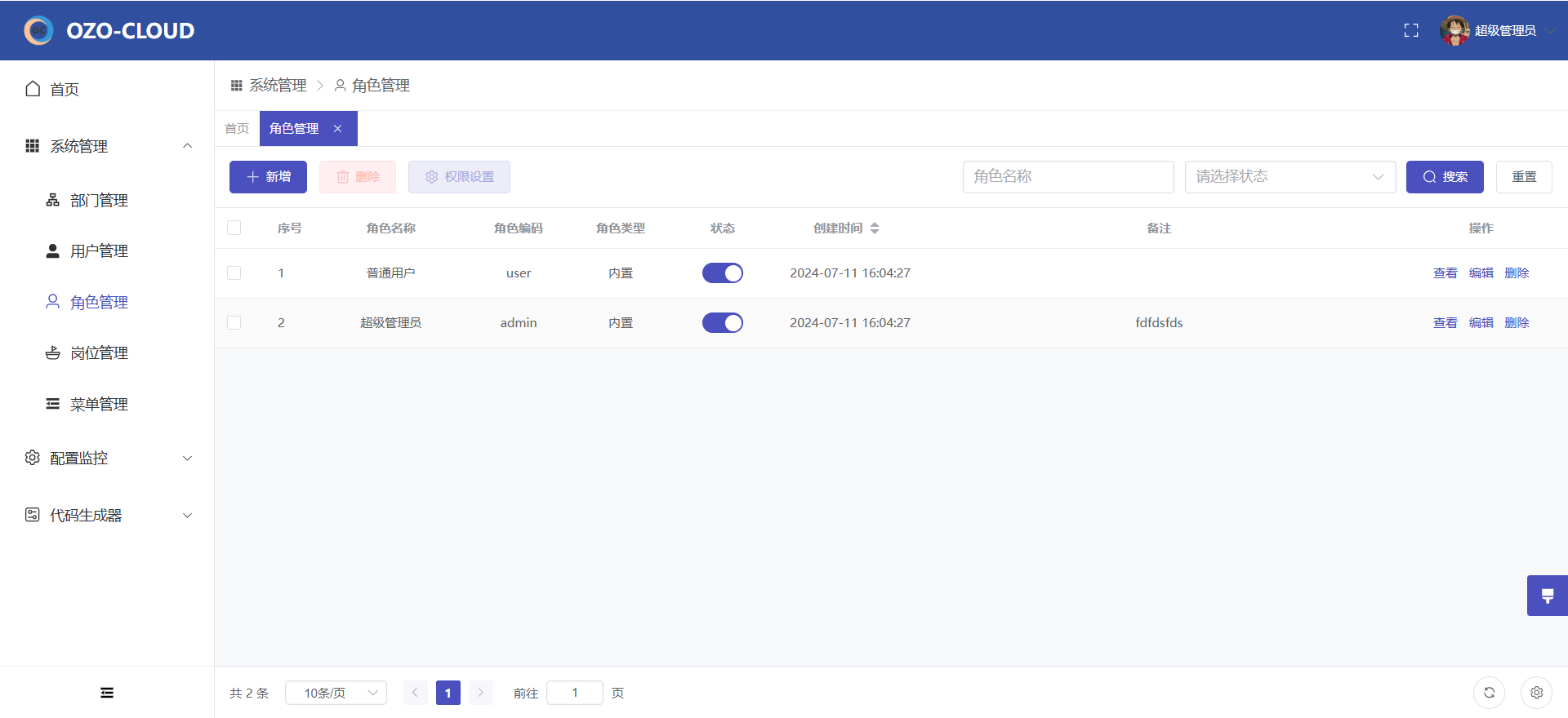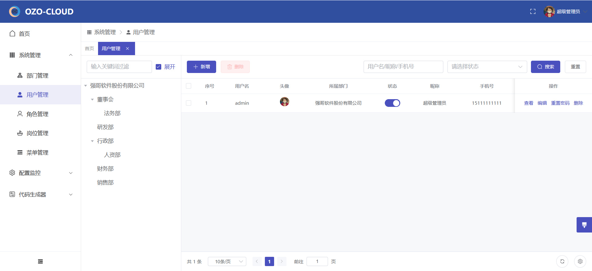 - 数据库准备:新建数据库ozo_boot,导入doc/sql下的ozo_boot.sql到数据库中