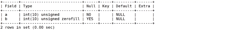 -- 建表时设置 ZEROFILL