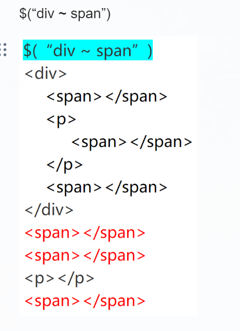 后续全部兄弟关系节点选择器:在s1后边获得全部兄弟关系的s2节点