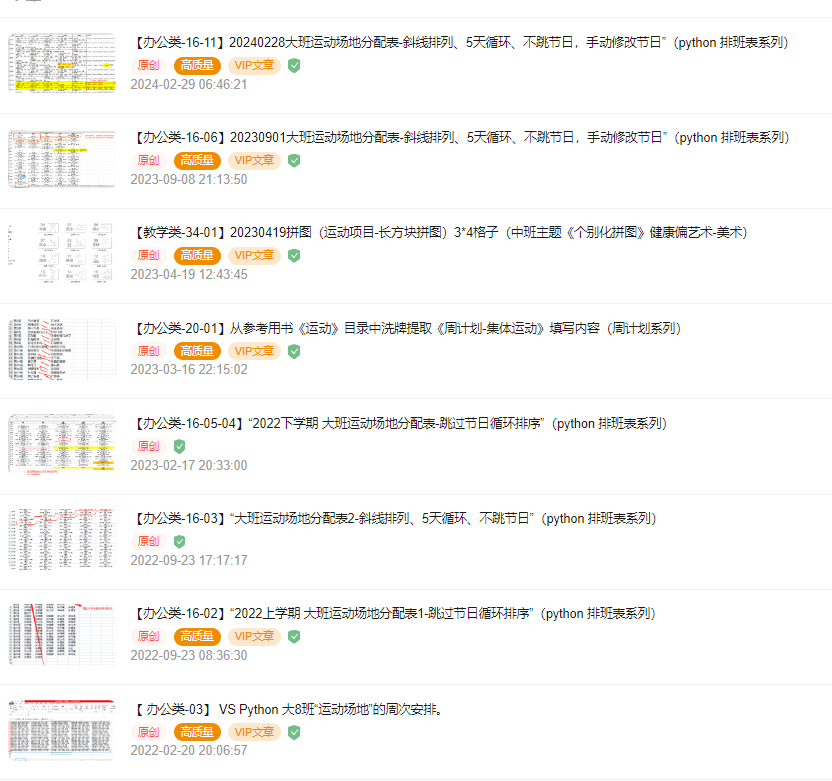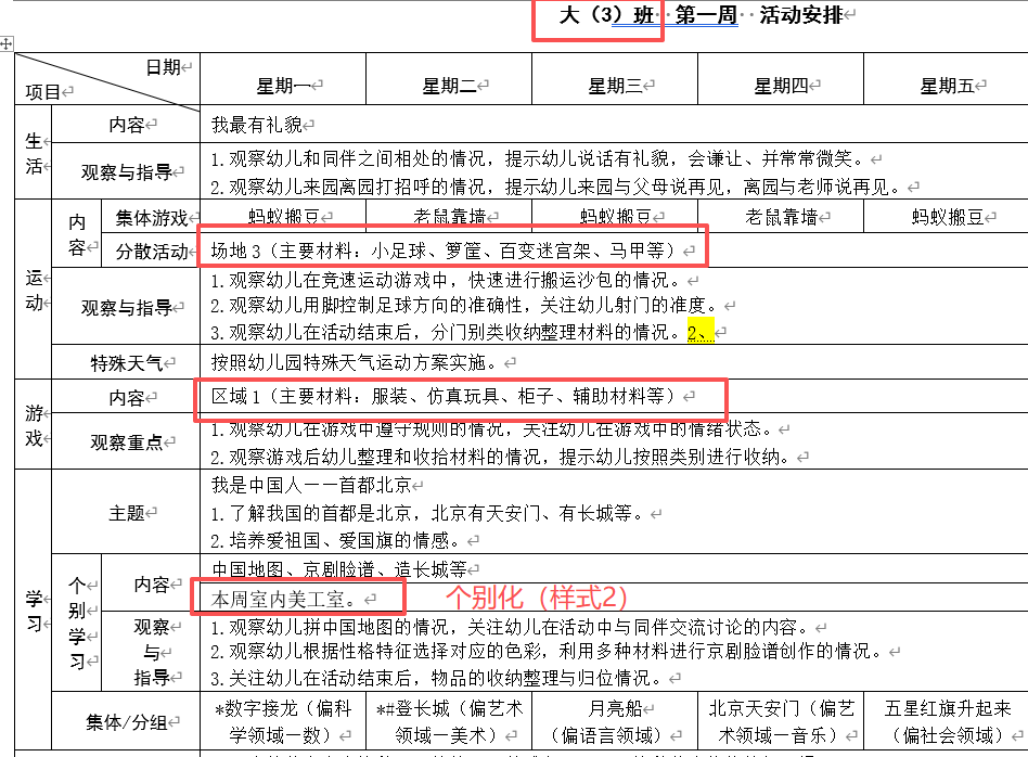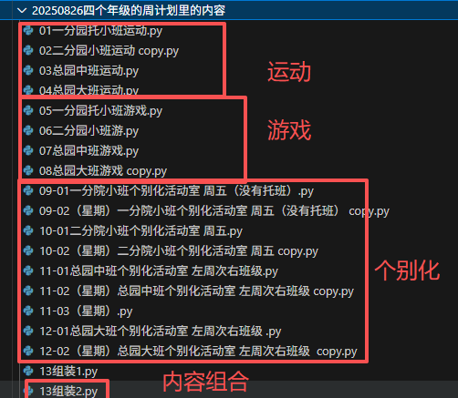 所以 从2022开始,我就长期研究如何批量生成班主任用的,周计划里面运动、游戏、个别化的内容。