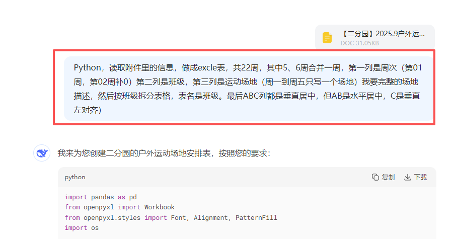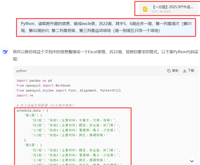 完整教程:【办公类-54-08】20250831Deepseek编写Python代码制作各班的周计划基础信息(户外运动、自主游戏、个别化)